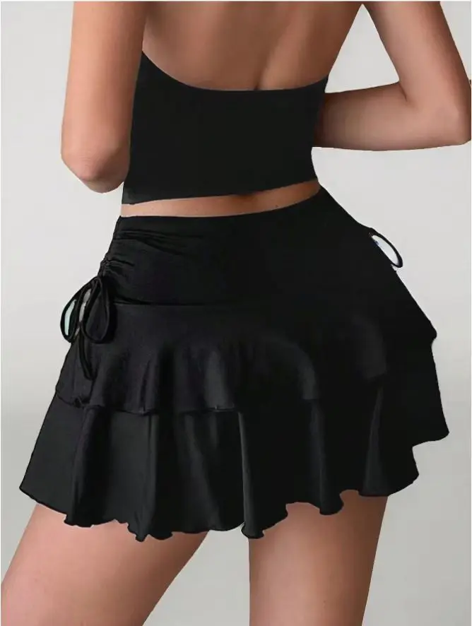 2025 New Solid Color Skirt Women Summer Fashion Outdoor Versatile High Waist Slim Fit Elastic Waist Short Skirt Goods In Stock