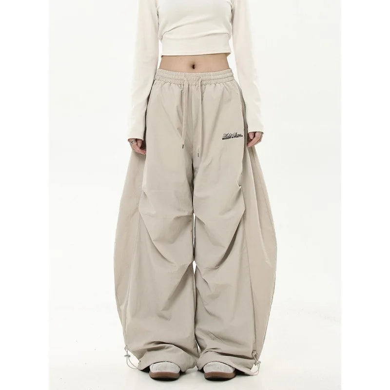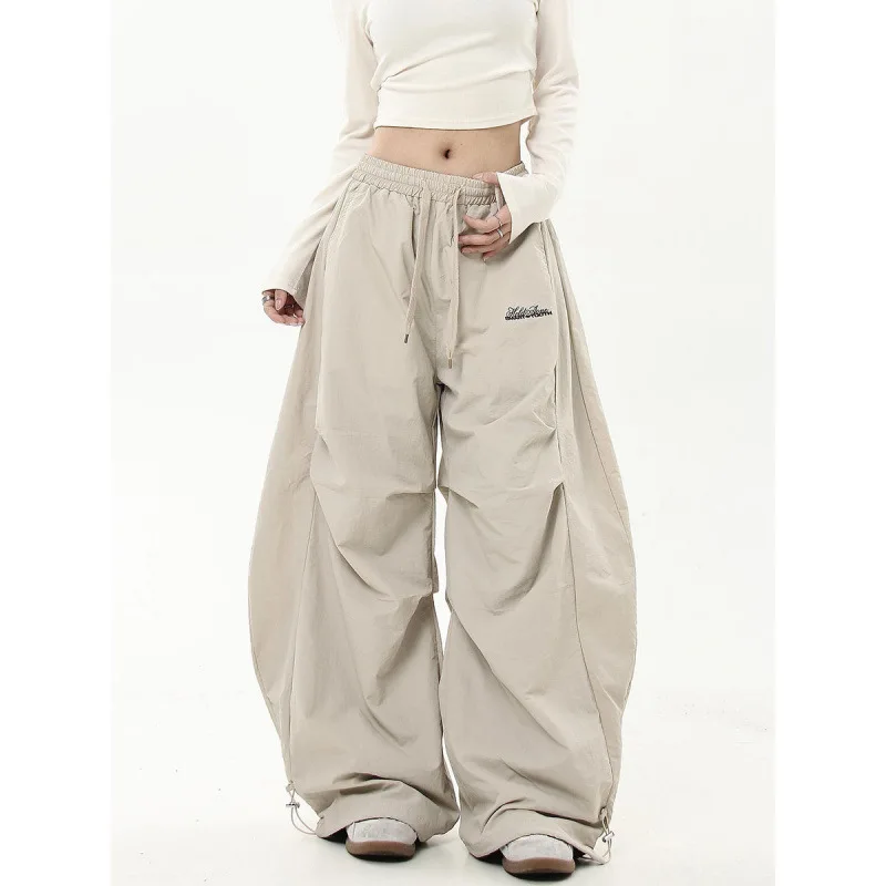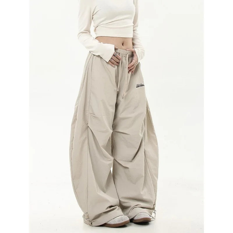 American retro high-end pleated paratrooper work pants, high waisted drawstring pants, loose wide leg floor pants