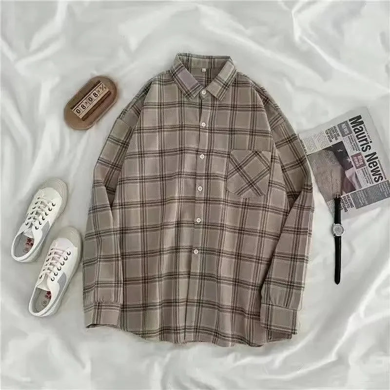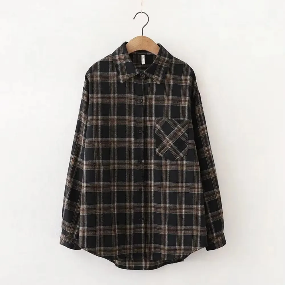 Autumn/Winter Retro Long Sleeve Plaid Shirt Korean Fashion Versatile Autumn Plaid Shirt Loose Versatile Top