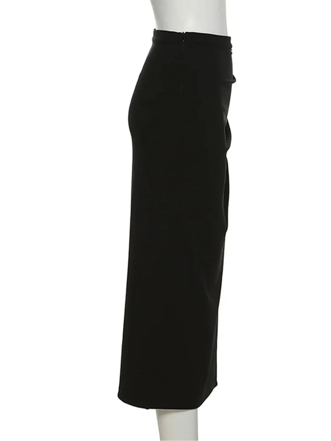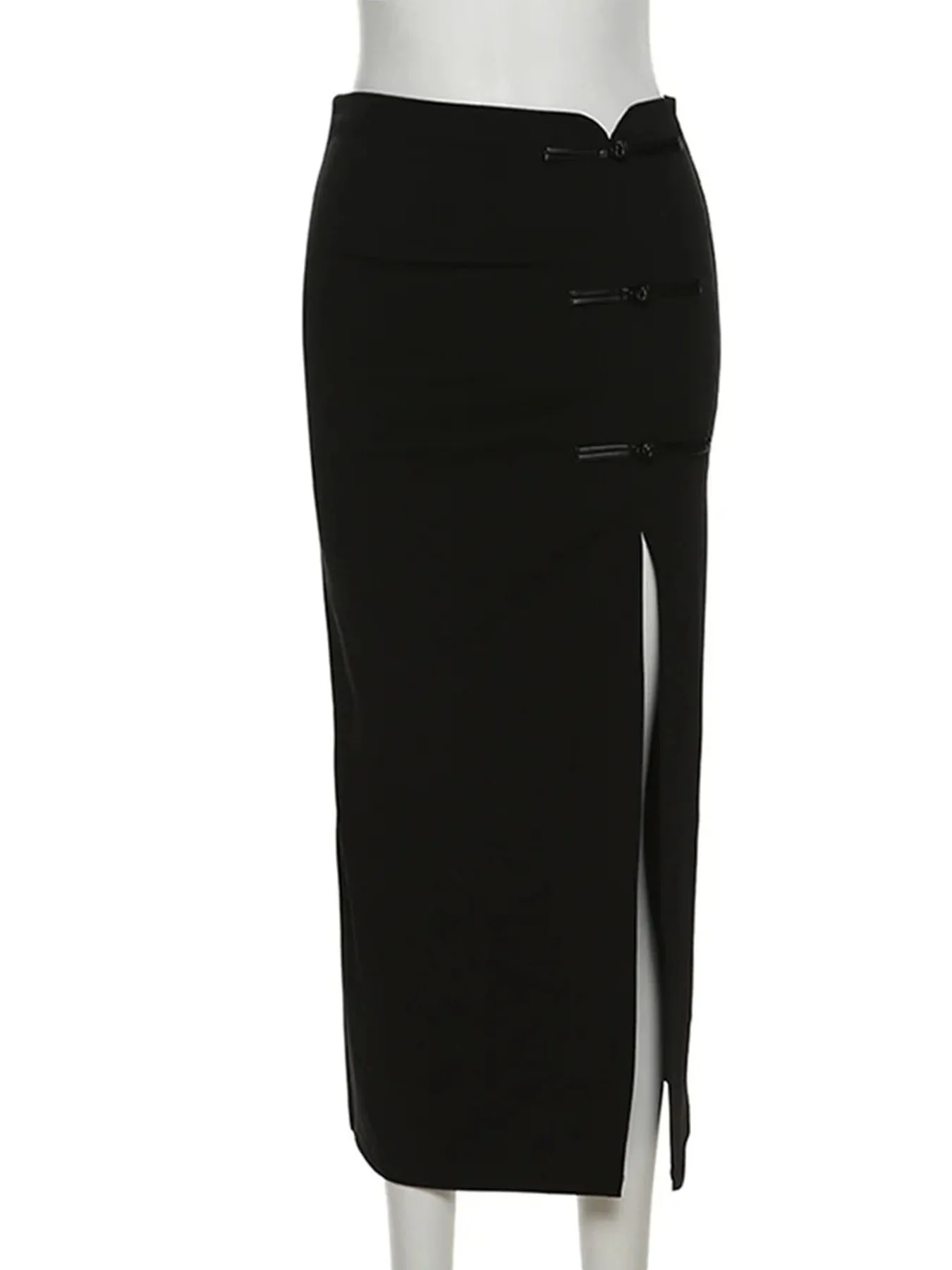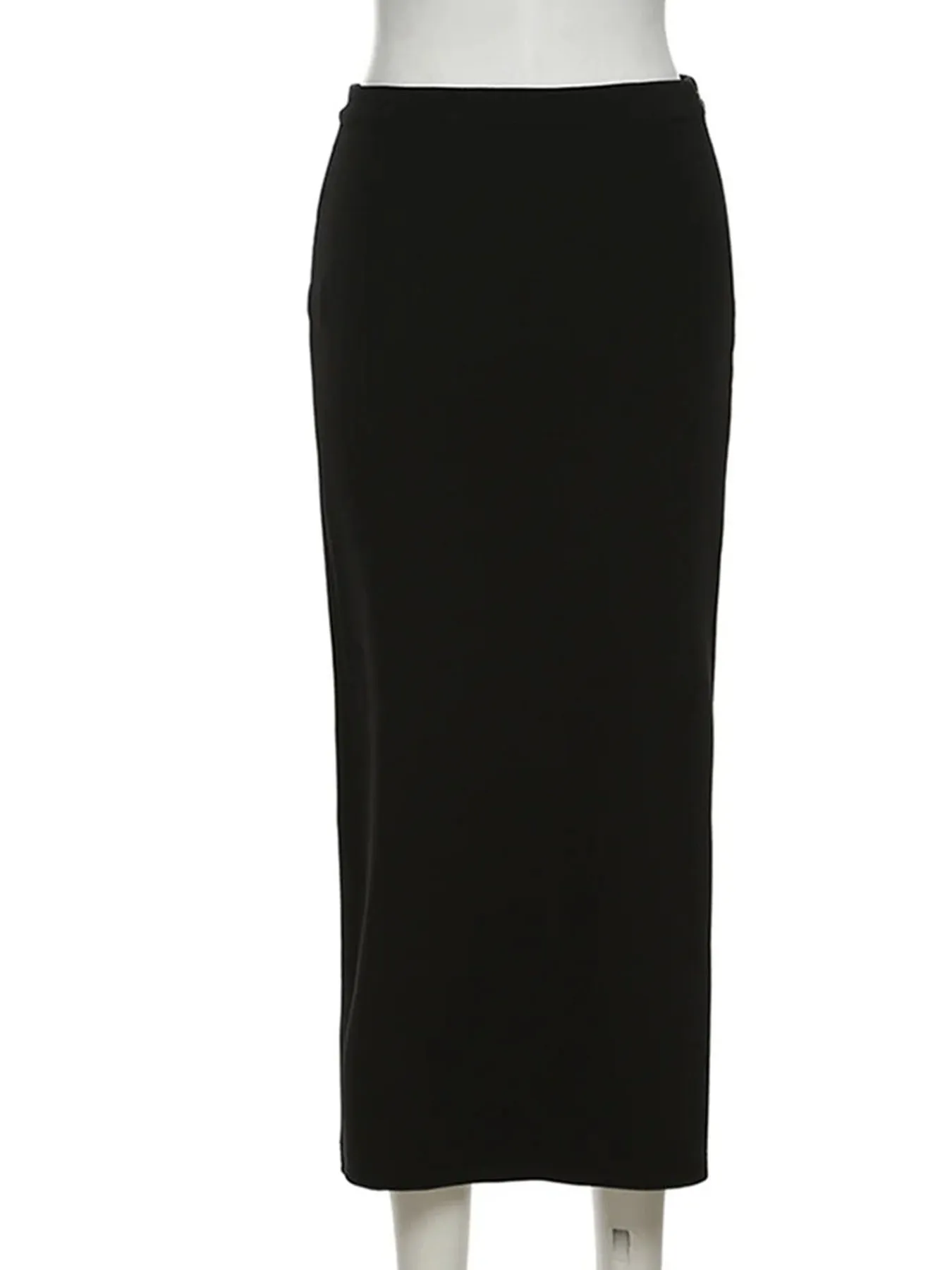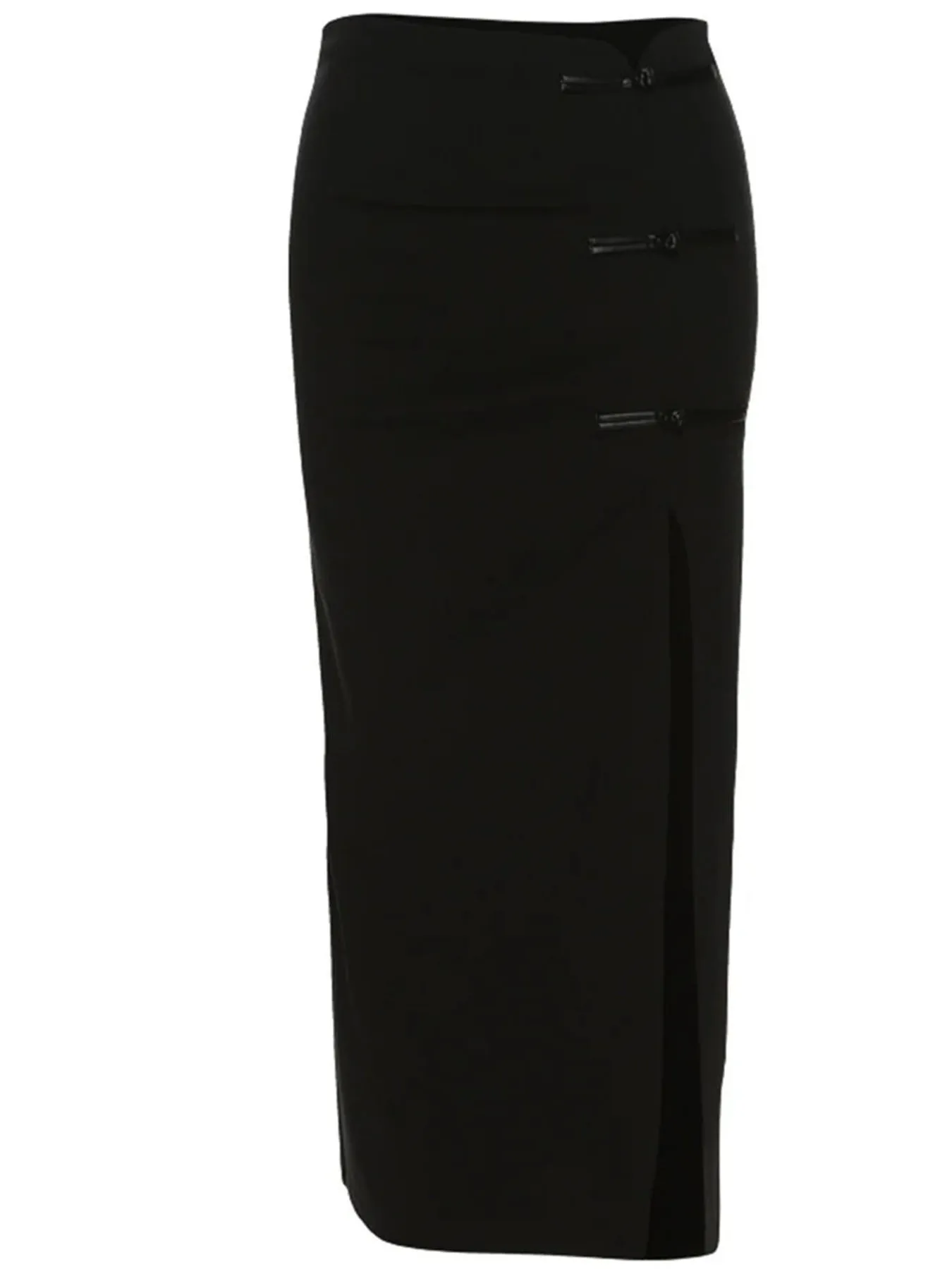 Black Sexy Split Simple Casual All-Match Hot Street Outing Cool Mature Vitality Personality Trend Basic Women'S Skirt