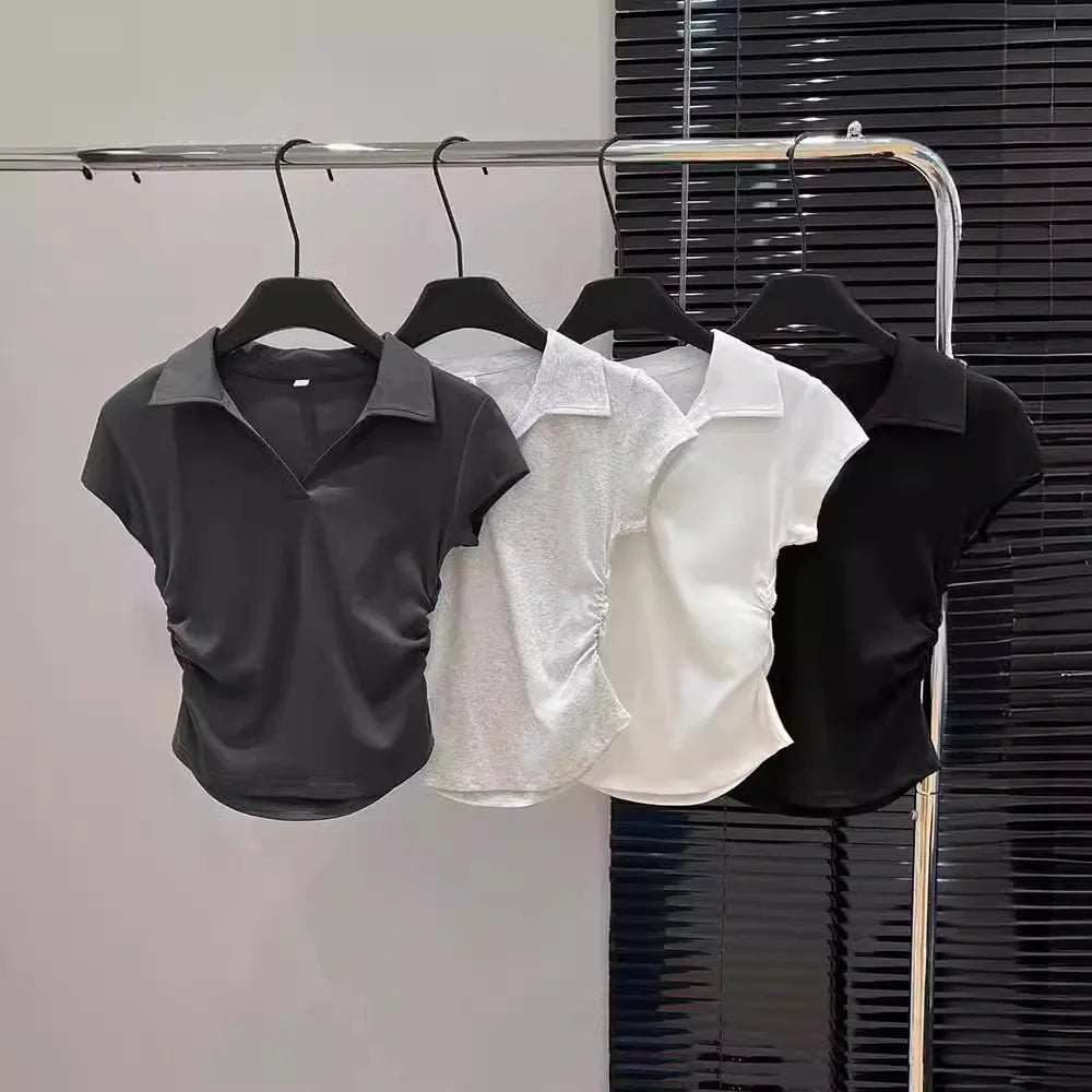 Cotton Summer Sexy Women's T Shirt Skinny Slim Basic Solid Crop Top Short Sleeve Polo TShirtCasual Top Tee for Women