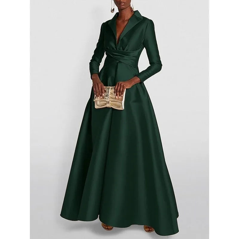 Elegant solid color Long Sleeves Evening Dress Women's Party Gown V-Neck high Waist Maxi Dresses For Wedding Prom 2026 new