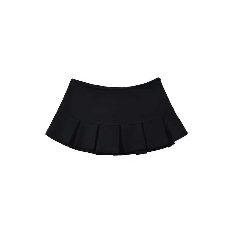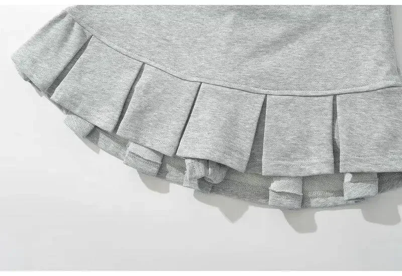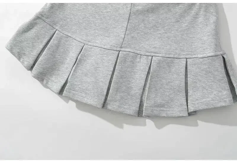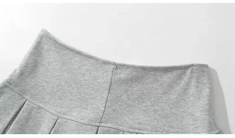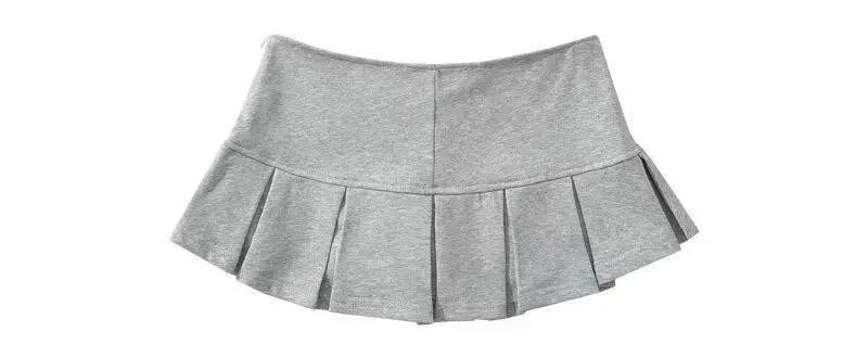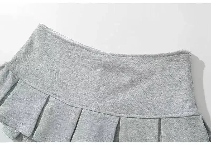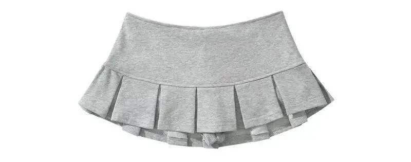 Fabric Y2K Mini Skirt Women Low Waist Wide Pleat Light Grey Sexy Vintage A-line Pleated Skirt Casual Skort Summer