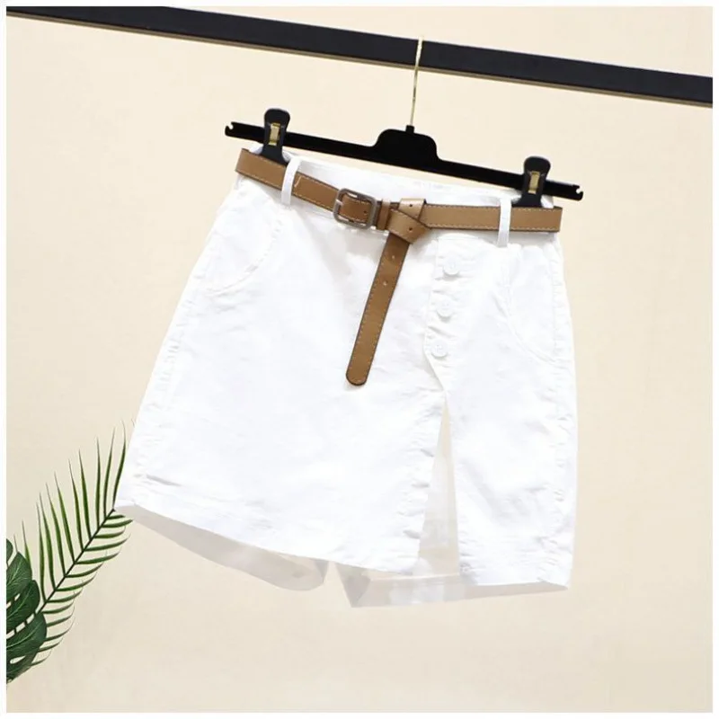 Fashionable versatile waistband with slit A-line skirt pants, solid color buttons, chic Harajuku style, summer loose shorts