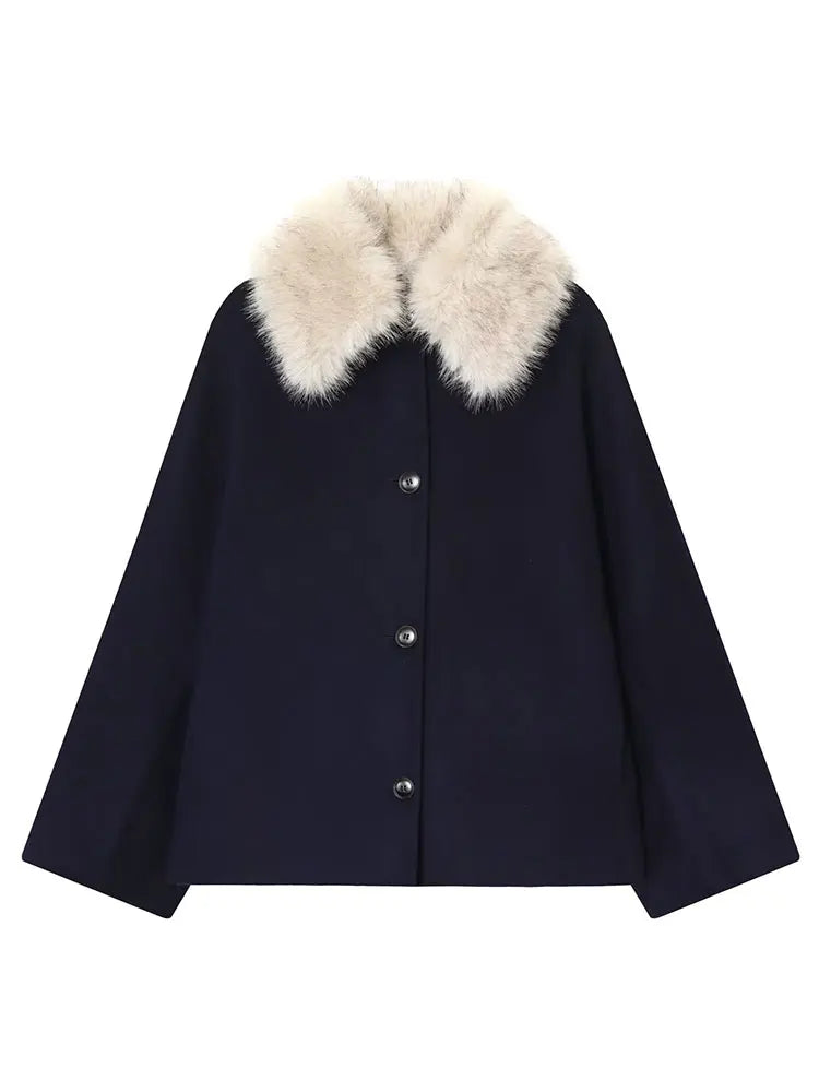 HH Women Fashion Faux Fur Lapel Woolen Coat Elegant Solid Long Sleeve Single Breasted Jackets Autumn Winter Lady Street Outwear