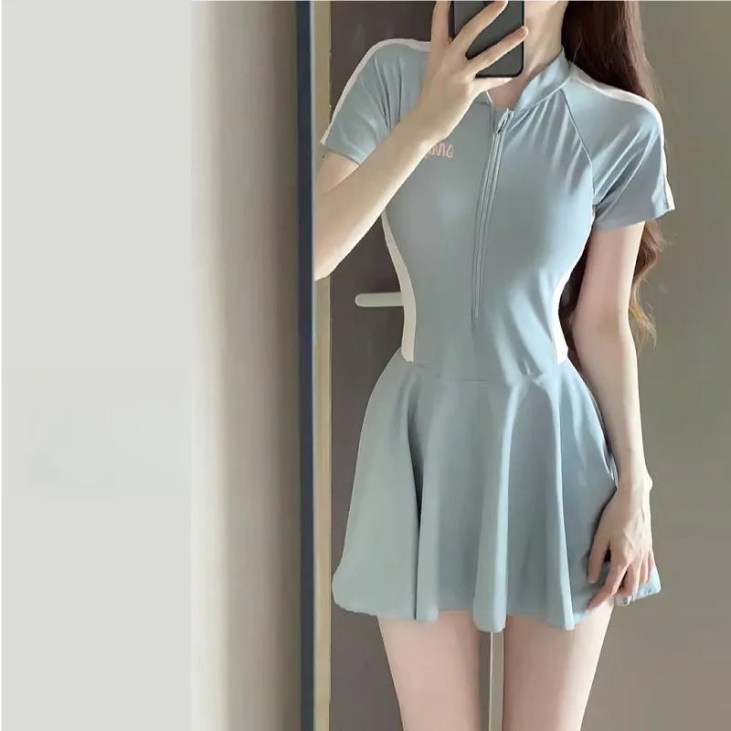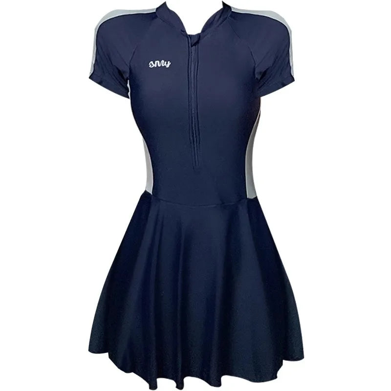 High-end Body Dress Swimsuit for Women Conservative Short-sleeved Sun Protection Student Sports Hot Spring Swimsuit