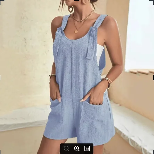 Ladies' casual summer jumpsuit overalls casual fashion solid color wide leg shorts lace up suspender pants with pockets