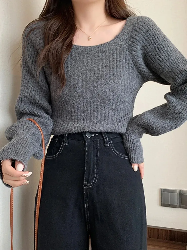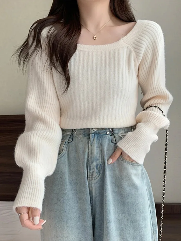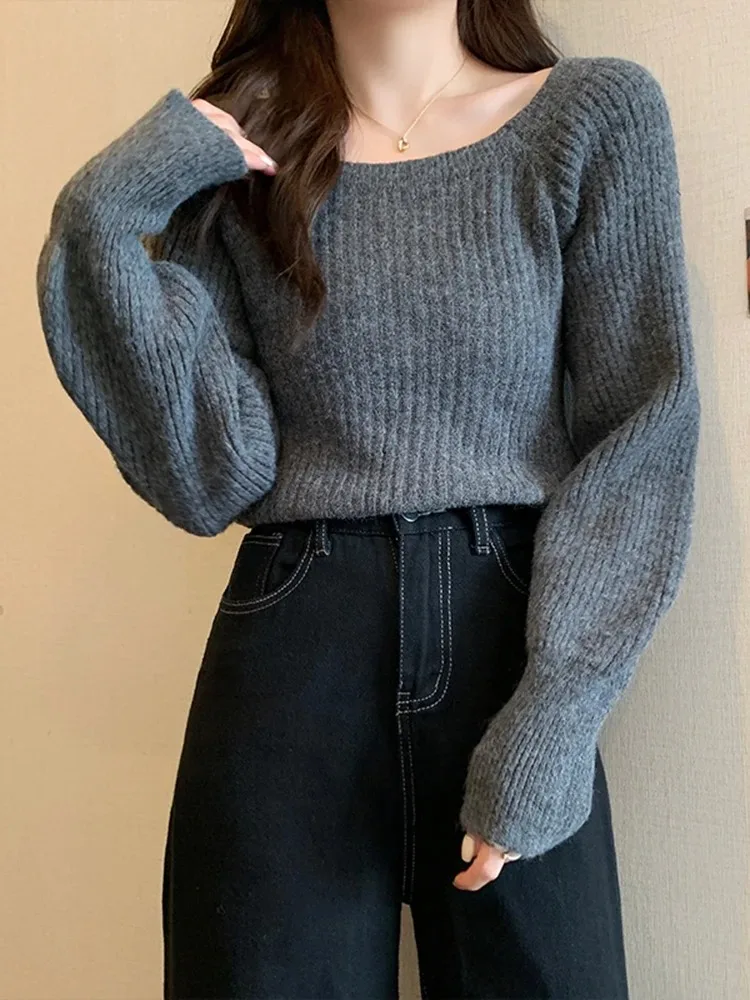 Lazy side wind restoring ancient ways led lantern sleeve sweater women cultivate one's morality show thin sweater niche western