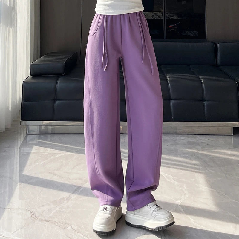 Purple sports sweatpants, banana curved knife pants, women's 2025 spring new style plus size fat mm casual pants M-5XL