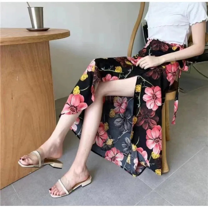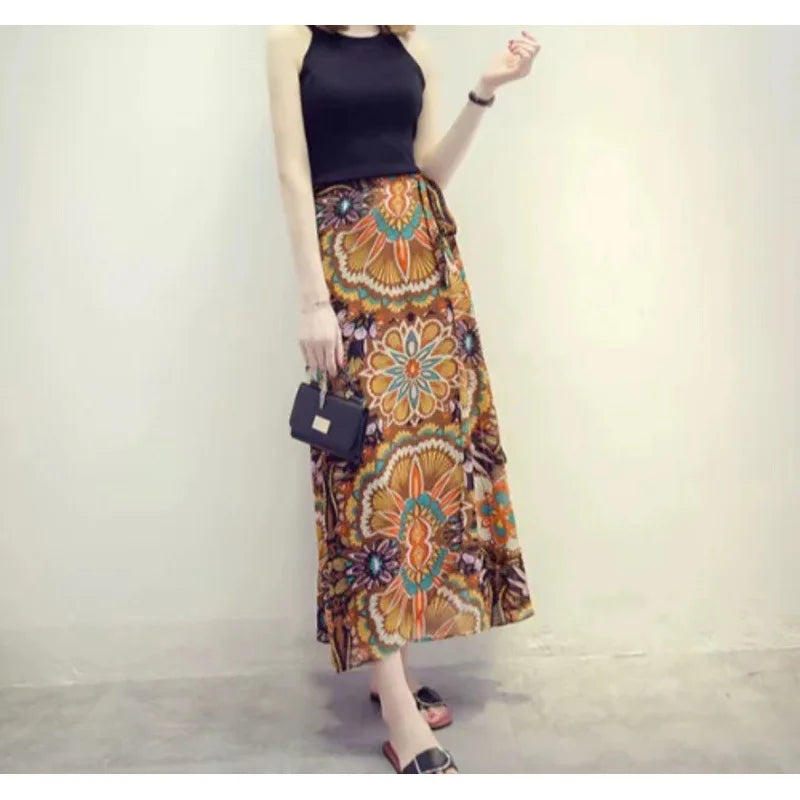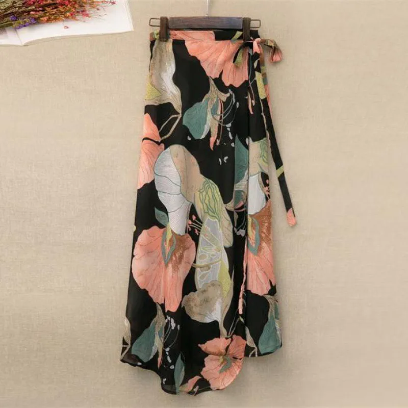 Summer beach women's floral high waisted half length skirt, one-piece wrap skirt for slimming, retro hip wrap skirt