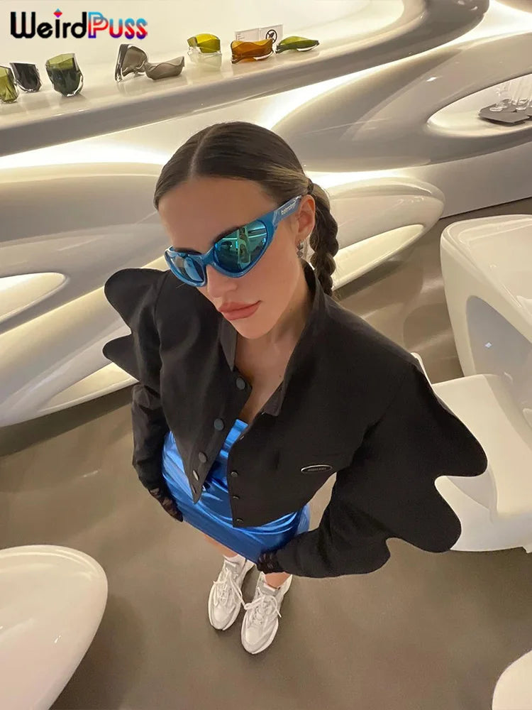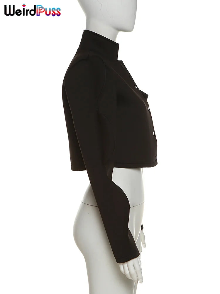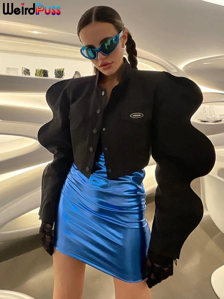 Weird Puss Fashionable Special Sleeve Jacket Women Y2K Autumn Warmth Solid Single-Breasted Wild Street Causal Short Outwear Coat