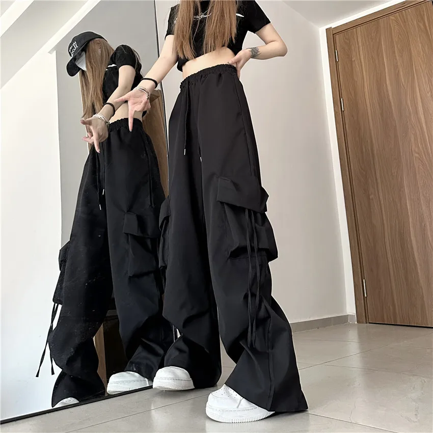 Women Y2K Cargo Pants High Waist Streetwear Hip Hop Trousers Female Big Pockets Casual Low Waist Drawstring Baggy Sweatpants