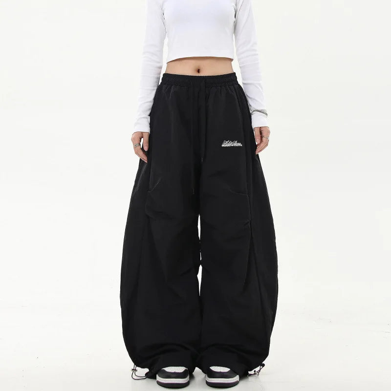 American retro high-end pleated paratrooper work pants, high waisted drawstring pants, loose wide leg floor pants