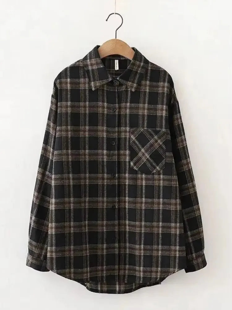 Autumn/Winter Retro Long Sleeve Plaid Shirt Korean Fashion Versatile Autumn Plaid Shirt Loose Versatile Top