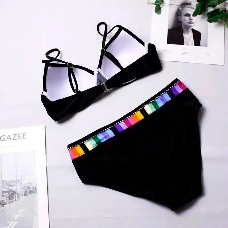 Black and blue printed high waisted bikini set swimsuit women's sexy lace up two-piece gradient women's swimsuit swimsuit