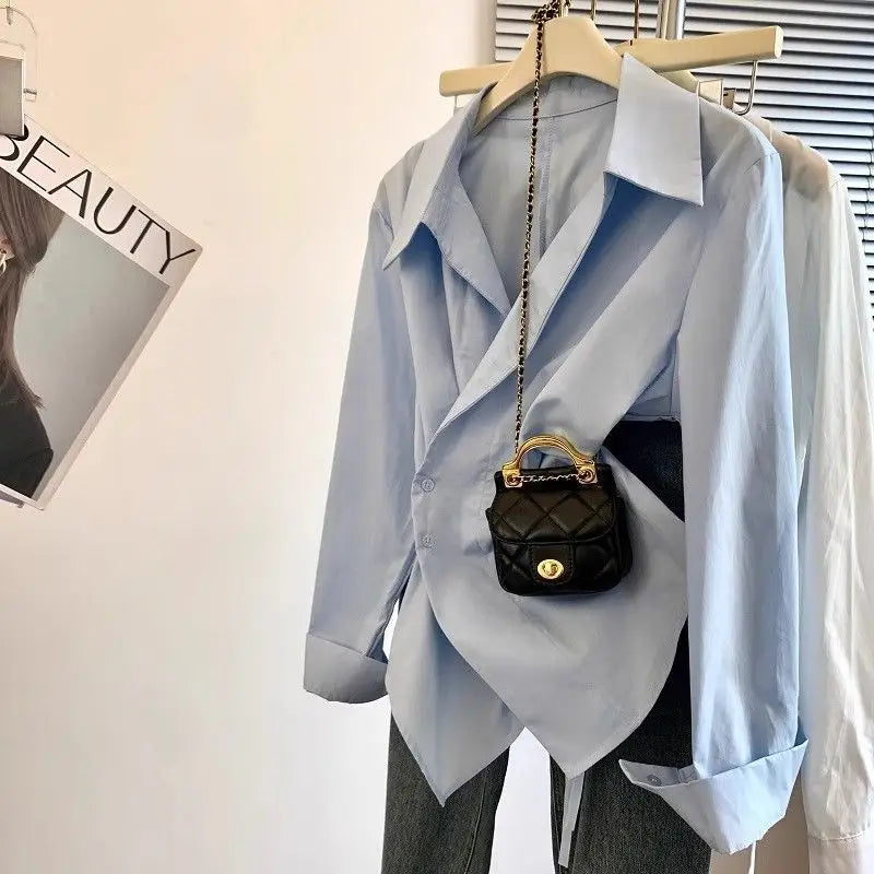 Designer Irregular Long sleeve Polo Shirt Women Tunic White Elegant Basic Top Blouse Ladies Fashion Work Wear Shirts
