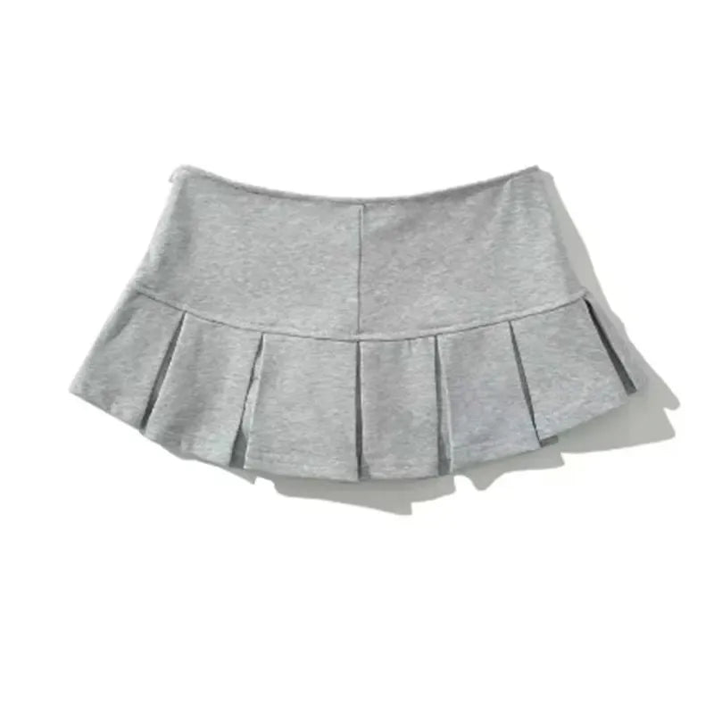Fabric Y2K Mini Skirt Women Low Waist Wide Pleat Light Grey Sexy Vintage A-line Pleated Skirt Casual Skort Summer