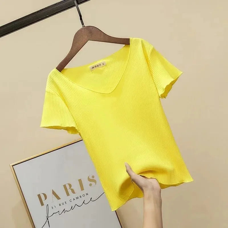 Pullover knitted Short Sleeve knitted Sweater Women Spring Summer Slim Basic Solid Casual Base Female knitting shirts