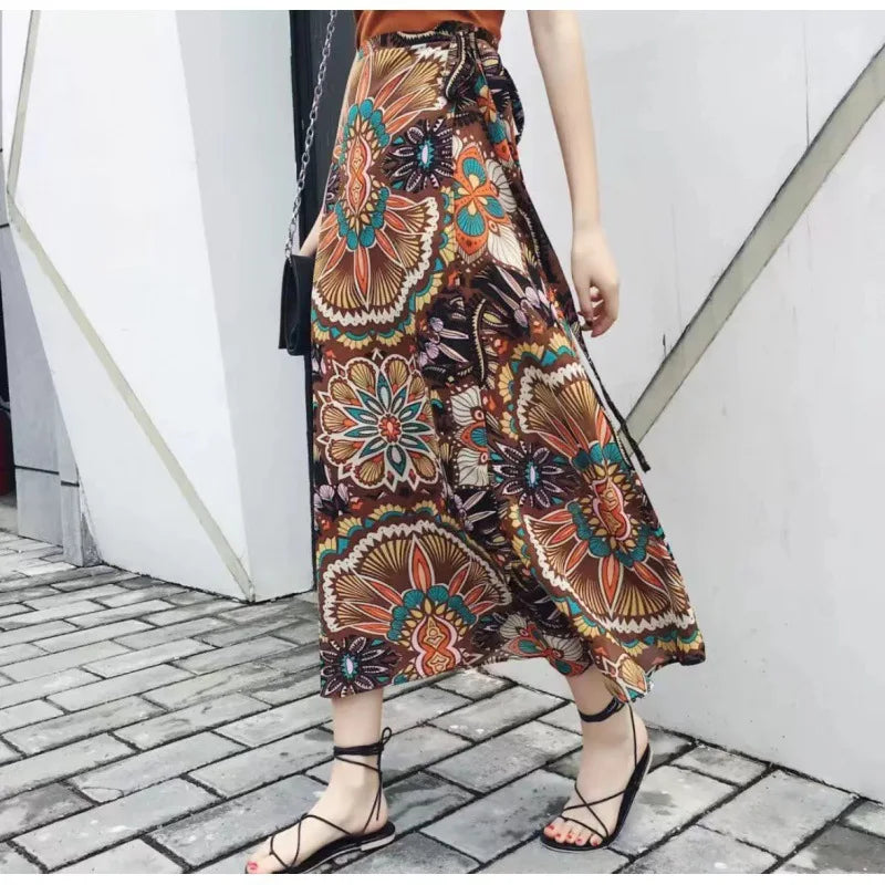 Summer beach women's floral high waisted half length skirt, one-piece wrap skirt for slimming, retro hip wrap skirt