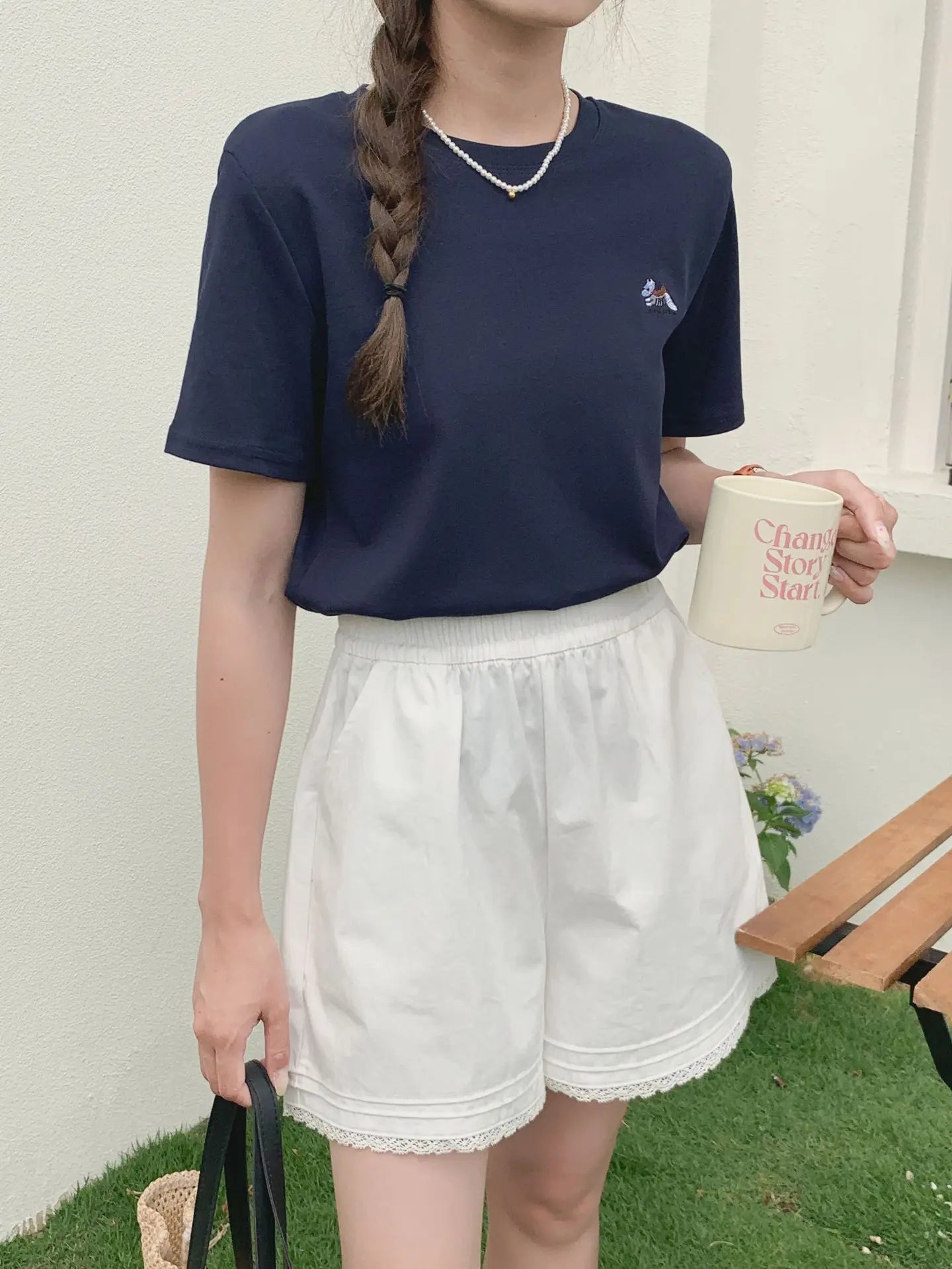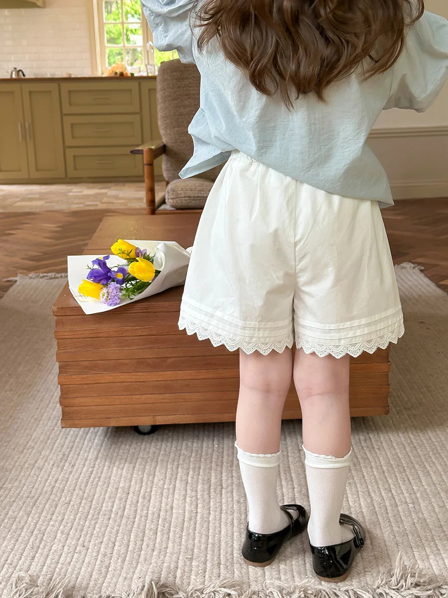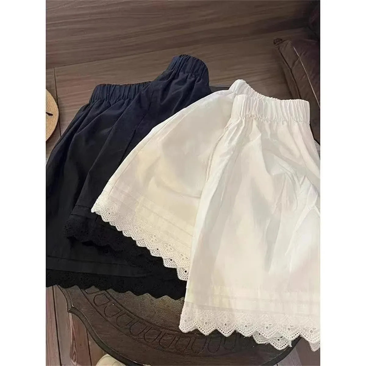 White Lace Trim Patchwork Casual Shorts for Women's High Waisted Wide Leg Vacation Beach Pants Loose Thin Bottoms Home Shorts