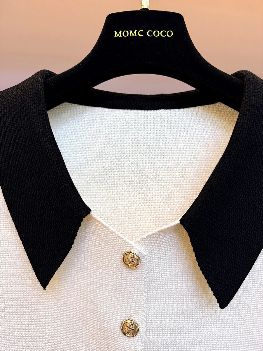 Women French Color Block Sleeveless Vest V-Neck Knit Tank Top Lapel Collar Elegant Preppy Cropped Waistcoat Casual Vest Top