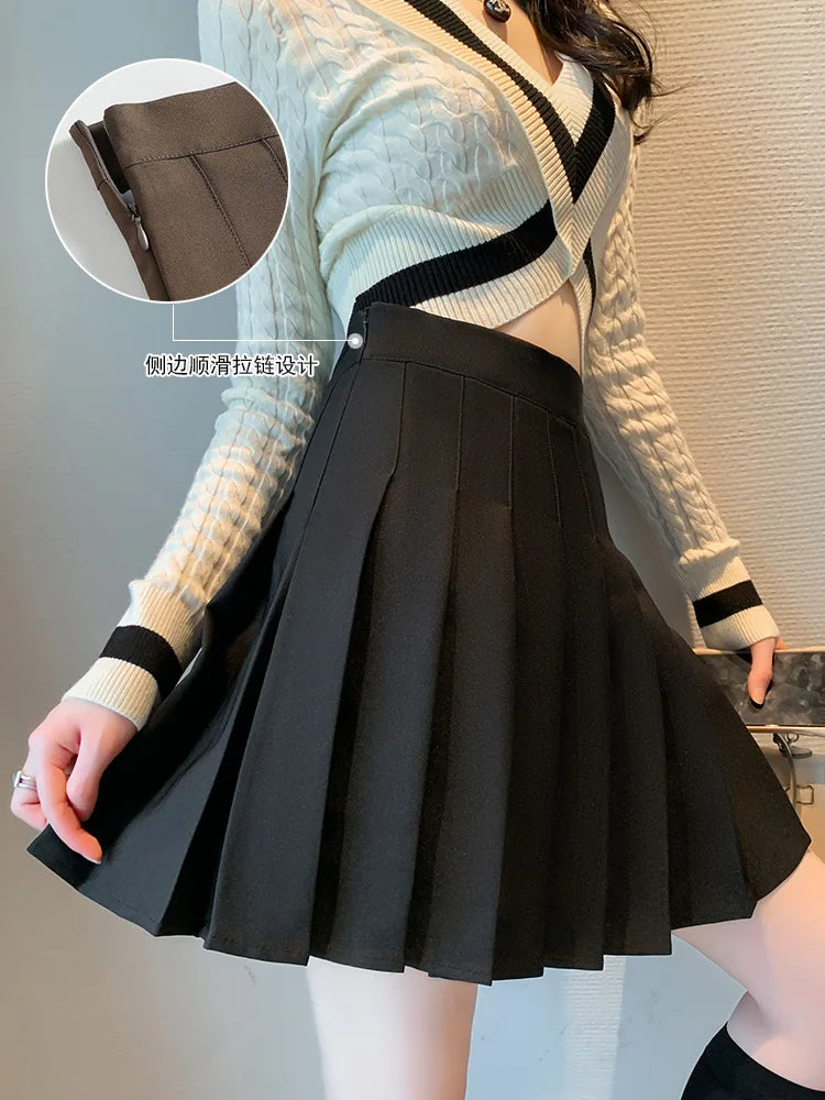Women's pleated skirt summer high waisted zipper girl dancing JK mini skirt black fashionable student A-line half body skirt